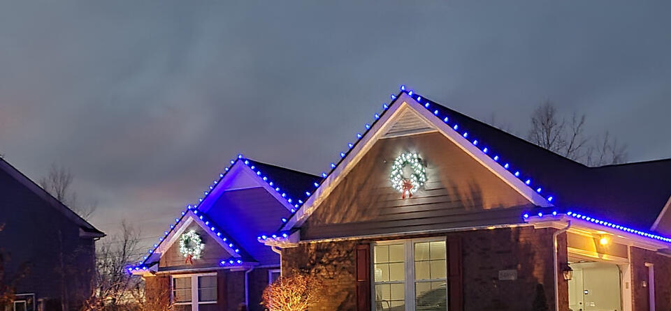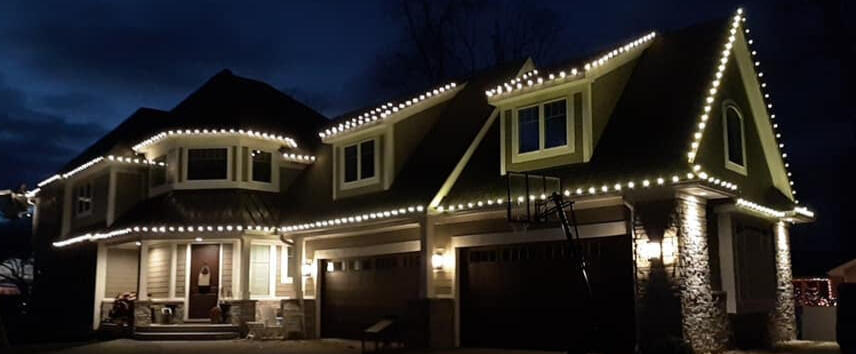 Custom roofline Christmas‑light design & installation for residential, commercial, and municipal buildings