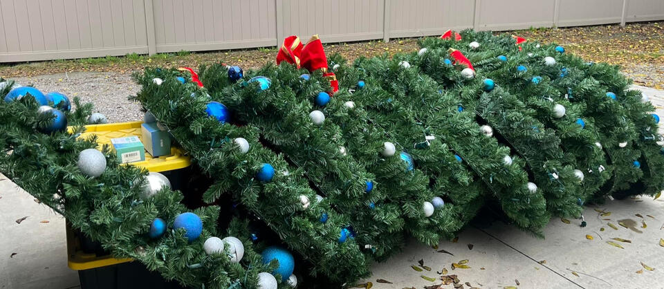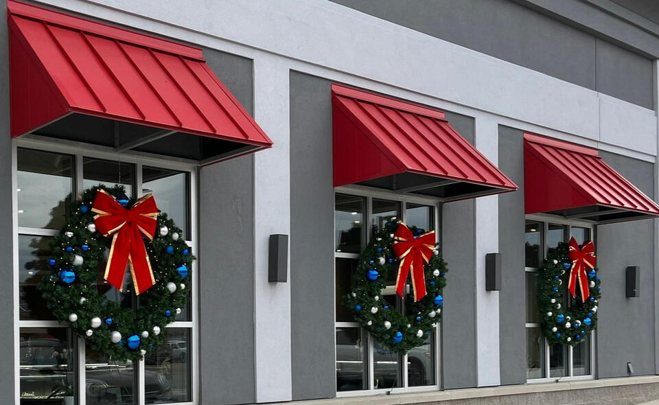 Oversized pre‑lit wreaths and lush LED garland—custom bows, branded colors, timer controls—installed, removed, and stored by Detroit’s trusted professional holiday‑lighting team.